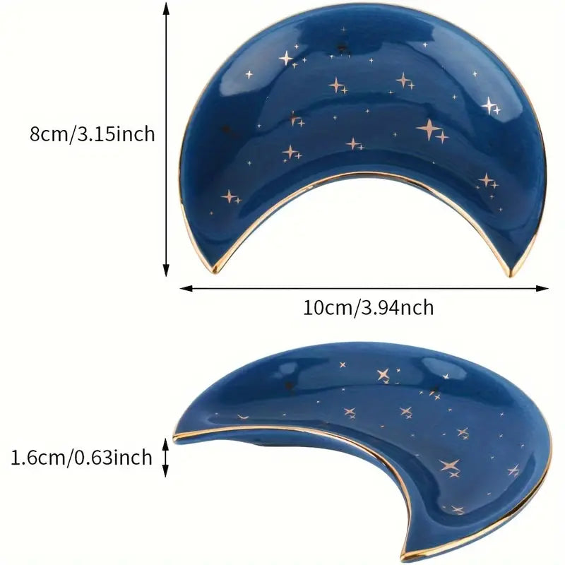 Moon-Shape Ceramic Jewellery Plate, Dresser Storage White Plate.